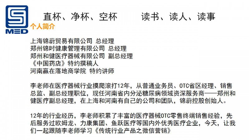 《傳統(tǒng)行業(yè)下之產(chǎn)品微信營銷(二)》——鄭州和健醫(yī)療器械有限公司 副總經(jīng)理 李海勇先生