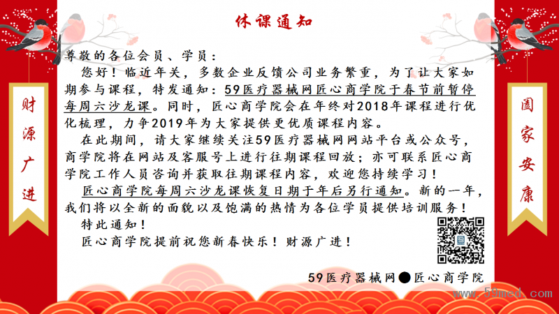 【59醫(yī)療器械網(wǎng)匠心商學(xué)院】休課通知