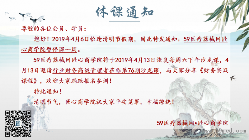 【59醫(yī)療器械網(wǎng)匠心商學(xué)院】休課通知