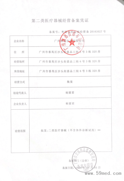 榮譽(yù)資質(zhì) 第二類(lèi)醫(yī)療器械經(jīng)營(yíng)備案憑證