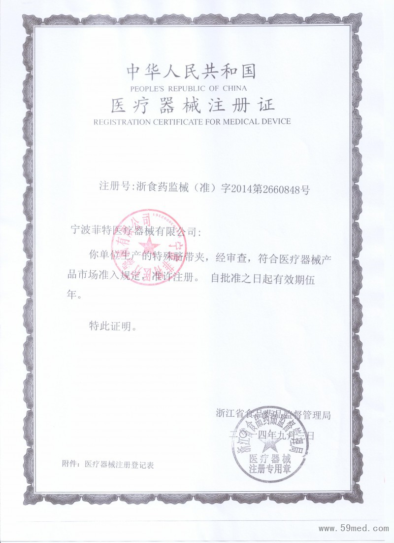 中華人民共和國醫(yī)療器械注冊證