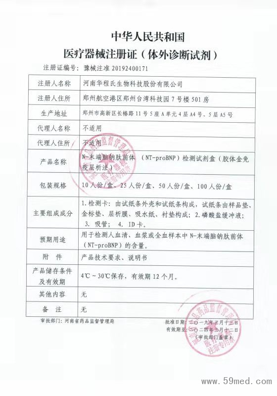 中華人民共和國醫(yī)療器械注冊證(體外診斷試劑)