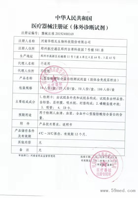 中華人民共和國醫(yī)療器械注冊證(體外診斷試劑)