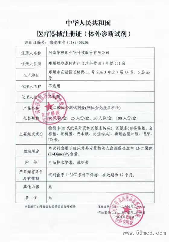 中華人民共和國醫(yī)療器械注冊證(體外診斷試劑)