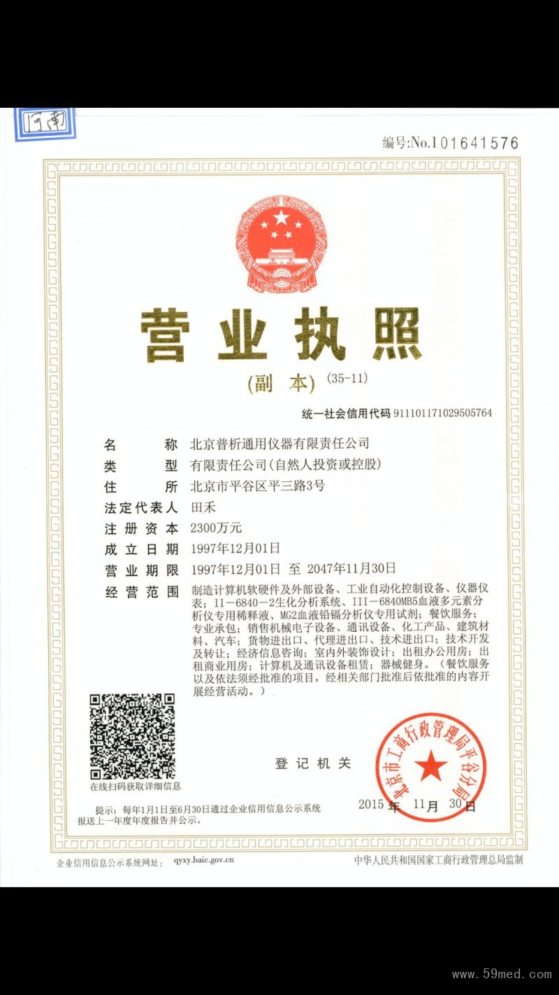 | 發(fā)證機(jī)構(gòu): | ??北京市工商行政管理局平谷分局 | 發(fā)證時(shí)間 : | ??2015-11-30 |