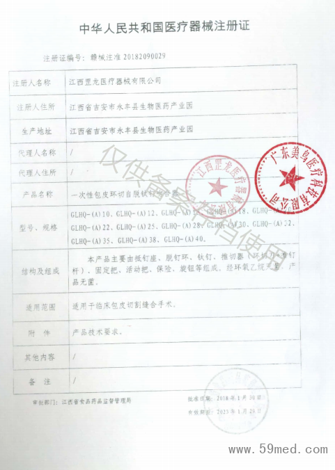 中華人民共和國醫(yī)療器械注冊證