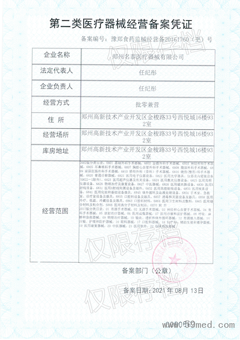 首頁 > 榮譽(yù)資質(zhì) > 醫(yī)療器械經(jīng)營備案憑證