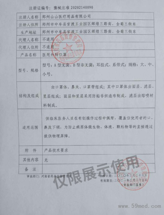 | 發(fā)證機(jī)構(gòu): | ??河南省藥品監(jiān)督管理局 | 發(fā)證時(shí)間 : | ??2020-03-26 |