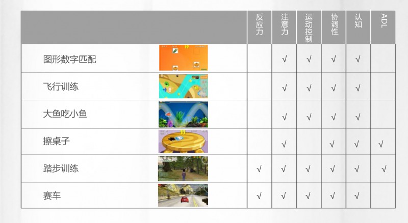 BioMaster結(jié)合虛擬情景互動(dòng)技術(shù),進(jìn)行靶向性的運(yùn)動(dòng)控制訓(xùn)練,提供多種形態(tài)的虛擬現(xiàn)實(shí)情景互動(dòng)訓(xùn)練,增加訓(xùn)練沉浸性、交互性和構(gòu)想性,提高了訓(xùn)練者參與程度,降低了治療師的工作強(qiáng)度。