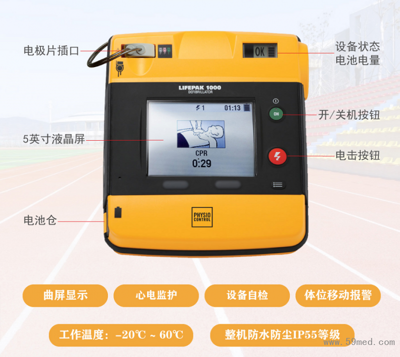 用途:用于體育運動、健身、壓力、基礎疾病引發(fā)的突發(fā)性心臟驟停,院前救治,使心律恢復正常,能夠在120救護車來之前救治生命。