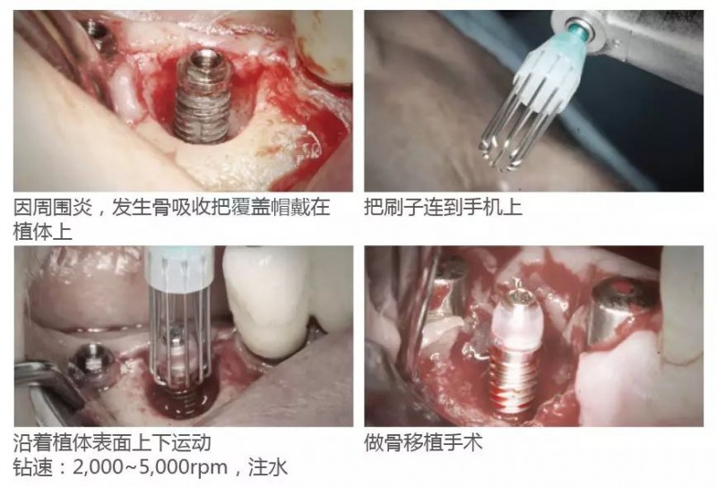 通過在種植體周圍高速旋轉(zhuǎn),清除周圍炎癥,從而有利于延長(zhǎng)種植體使用壽命