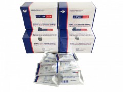試劑卡為鋁箔袋單人份包裝,內(nèi)有干燥劑、槍頭。通用規(guī)格為:1人份/盒、5人份/盒、25人份/盒。