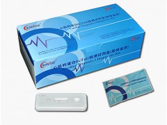本產品是采用膠體金免疫層析技術以雙抗體夾心法原理定性檢測人血清/血漿中的cTnI。在試劑卡中的纖維膜上質控線(C線)包被有羊抗鼠IgG, 檢測線(T線)包被有抗cTnI單克隆抗體-2,另一端包被有抗cTnI單克隆抗體-1-膠體金復合物。檢測時,被檢血清/血漿樣品首先與抗cTnI單克隆抗-1-膠 體金混合,并沿纖維膜向上層析依次通過T線、C線。如果血清/血漿中有cTnI存在,cTnI首先和抗cTnI單克隆抗體-1-膠體金結合,形成“cTnI-抗cTnI單克 隆抗體-1-膠體金復合物”,在層析至T線時,會被預先包被在T線的另一抗cTnI單克隆抗體-2捕獲,而在T線處形成出現一條紅色線條,為陽性結果。如果 血清/血漿中沒有cTnI,則不會在T線處形成線條,為陰性結果。無論血清/血漿樣品中有無cTnI,C線處總應有紅色線條出現,C線的出現表明試劑盒有效和 操作正確。