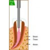 步驟3A把充填頭放入根管孔內(nèi),按住開關(guān)按鈕加熱,切斷GP中間部位,然后將充填頭壓至距根尖孔6-9mm處,壓1.5-2秒鐘。